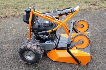 Ezután jöhettek a keményebb gépek. Ezek is önjáróak, van, amelyik nagyobb szálakat hagy maga után – ez takarmánynak is jó lehet, de van, amelyik a derékig érő gazt egészen apróra darabolja. Az AS 63 akkorára összehajtogatható, hogy akár egy nagyobb kombiba is befér, kábé 70 kilós, tehát két felnőtt ember ki is tudja emelni a kocsiból. A nyírási magassága fokozatmentesen állítható, természetesen ez is önjáró gép. A pengék egy külön hajtáson keresztül kapják meg a motor forgó mozgását – mivel nem közvetlenül a főtengelyről van hajtva, egy esetleges durva ütközés egy vastagabb rönkkel vagy sziklával nem töri ketté a drága főtengelyt.