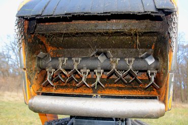 Amint lecsoszogott a rámpáról és irányba fordult a gép, meg lehetett nézni közelebbről, mit is rejt az orrára szerelt nagy szerkezeten lógó gumirojtok és láncok függönye. Úristen, Szűz Mária, Szent József és valahány név a naptárban! Ami itt, a forgódobra szerelve lifeg, az még így, nyugalomban is félelmetes, mit csinálhat ez a rakás láncon csüngő, masszív acélpenge mikor megpörgetik? Jobb is, ha az ember az ilyesmit messziről (akár 300 méterről) irányítja, ez felzabál mindent és bármit, ami az útjába kerül.