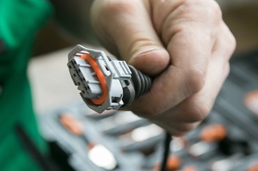 Az Axiál bajai telephelyén egy Landini traktor egyik szögjeladójának a stekkerét bontottuk szét egy mozdulattal, sérülés nélkül, ahogy kell. Lehet, hogy két gombostűvel is célba értünk volna, de ez a szerszámkészlet a profizmusról szól, arról, hogy ne kelljen vacakolni, hanem százból száz csatit pillanatok alatt lehessen megbontani. Mondjuk ha szűk lyukon kell átfűzni a kábelt, vagy újra kell krimpelni egy-egy sarut.