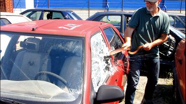 Eddig az elmélet, de mennyire nehéz puszta kézzel betörni az autó üvegét? Lelövöm a poént: nagyon. De nem lehetetlen. Szerencsére a Beck Bontónál pont akadt egy romos Renault 19, amin kipróbálhattunk pár fogást. Arra voltunk kíváncsiak, mi az, ami egy parkolóban a kezünk ügyébe eshet, és megkönnyítheti az üveg betörését. Most a gyújtógyertya apróra tört porcelánja, vagy a lakatosok által használt rugós pontozó nem játszik, mert bár ezekkel nagyon jó hatásfokkal lehet üveget törni, ritkán találni ilyesmit a „Katica” soron parkoló kocsik közt. Ha tényleg az égvilágon semmit nem találunk, puszta kézzel kell nekiesni az ablaknak, de ilyenkor mindenképpen tekerjük be a kezünket egy rongyba, pulóverbe, mert a szétrepülő szilánkok biztosan össze fogják vágni a karunkat. Apropó, szilánkok: mindig a kocsiban ülő gyerektől/állattól legtávolabbi üveget támadjuk, így lesz a legkisebb a veszélye annak, hogy a hősokkot még vágási sérülésekkel is tetézzük.