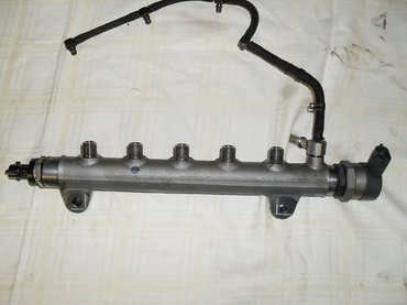 A nagynyomású üzemanyag útja egy fém üzemanyag-vezetéken át vezet a közös nyomástérbe. Többféle alakban létezik, döntő többségben azonban hosszúkás és hengeres, ezért a köznyelvben közös nyomócsőként, a nyelvújítók pedig railcsőként is ismerhetik. Ennek az alkatrésznek a feladata, hogy a felépített üzemanyagnyomást tárolja és elossza a befecskendezők között. Az általam ismert típusoknál minden esetben magába foglalja a közös nyomástér nyomásérzékelőjét (a képen bal oldalon), és opcionálisan tartalmazhat egy nagynyomású szabályzószelepet. Ennek a szelepnek a feladata elavultabb rendszereknél az üzemanyagnyomás-szabályzás, korszerűbb rendszereknél pedig a gyors nyomásleépítés vagy a vészüzem elősegítése.