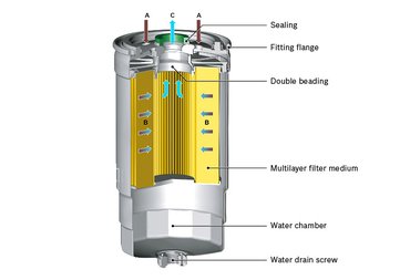 A gázolaj útjának következő állomása az üzemanyagszűrő. Ennek feladata a tüzelőanyagban lévő mikroszemcsék kiszűrése, a víztartalom leválasztása és a nagynyomású szivattyú által felhasznált gázolaj előtárolása. Ennek a szűrőnek a csereintervallumát is a járműgyártó határozza meg, azonban – főleg téli időszakban – nem szabad megfeledkezni a vízleeresztő csavar időközönkénti kitekeréséről (10-15 ezer kilométer). A víz jelenléte a befecskendező rendszerben ellenjavallt, mivel nem ég túl jól, és a kenőképessége is minimális. Bizonyos típusok esetén a tüzelőanyag-előmelegítőt is ebbe az egységbe integrálják.