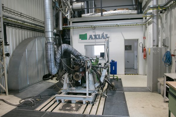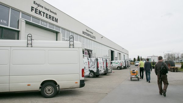 Amilyen motorok megfordulnak a műhelyben, azokhoz legyártják a méréshez szükséges elemeket, majd ha minden megvan és fel van szerelve, helyet lehet foglalni a mérőszobában, és pár kattintással indulhat a motor. Most éppen egy OM366-os, hathengeres Mercedes-motor van a padon, az első fordulatokat teszi meg a felújítás után. Nem egy bonyolult eset, soros adagolóján a gázkart kell húzogatni, a többi kábelezés többsége érzékelőkhöz vezet. Minden lényeges hőmérsékletet, a beszívott levegőtől a kipufogógázig, minden nyomást látni a monitoron, pár kattintással be lehet állítani a terhelést, a fordulatszámot, és már izzik is a turbó.