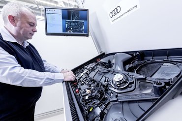 Valamiért azt gondoltam, az Audi fejlesztőközpontja olyan lesz, mint egy sci-fi laboratórium. Acél és üveg, hologramos kijelzőkön futnak hisztogramok, na meg olyan a tisztaság, hogy az ember már attól elszégyelli magát, ha túl sok kilégzés jut egy belégzésre. Ehhez képest málló vakolatú, poros csarnokban állunk, ahol felborított, Audi-logós dizeájnerhűtők gurulnak ide-oda a padlón. Nem egy rossz vicc, ez a jövő gyártástechnológiája.