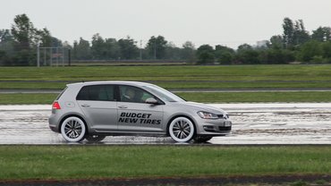 A kopott és új olcsó gumival egyaránt 78-79 km/h sebességnél kezdett a Golf eleje kicsúszni, és csak erős lassítással tudtuk visszanyerni a stabilitást. A kicsúszás mértéke nagyjából 2 méter volt. A középkategóriás gumival a tempó már 83-85 km/h, a szélesedő sugáron a gumi hamar megtapadt újra. A kicsúszás mértéke egy méteren belül maradt, és ismét tartani lehetett a köröm az autót. Nem éreztünk különbséget kopott és új gumi között, de a jobb abroncs nagyon meggyőző volt. Egyes jól értesült kollégák szerint a középkategóriás gumi a Primacy3-as modell volt, az olcsó gumi pedig Federal 595-ös, de ezt a mérést vezető dolgozók nem erősítették meg, egyébként is a Primacy3 modell prémium kategóriás abroncsa a Michelinnek.
