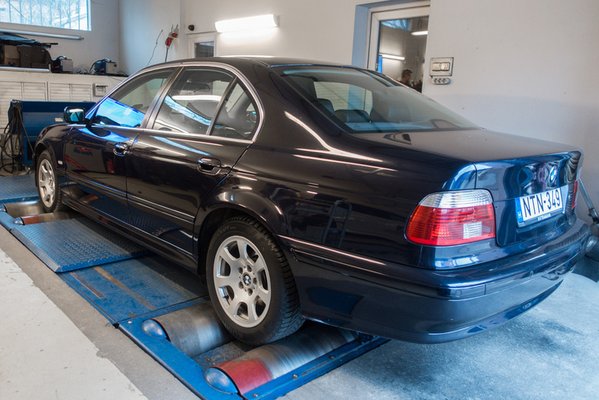 A mérésre jelentkezett 520-as már a faceliftes változat (csak ez kapta meg az M54-es motort) és egészen szép állapotú. Van már benne 276 ezer kilométer, de a belseje és a külseje egyaránt nagyon szép, sok kilométert letagadhatna. A modellre jellemző korróziós pontokon sem látszik semmi, pedig sok helyen még gyári a fényezése.