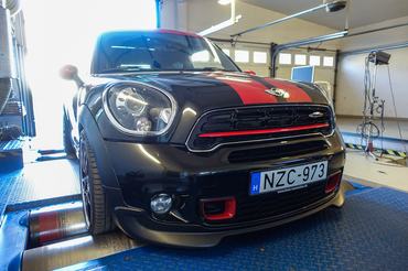 A JCW-Minikben volt a legerősebb, névleges teljesítménye itt 218 lóerő 6000/perc fordulaton. A mérésre érkezett autóban a gyári helyett K&N légszűrőt, valamint egy Forge lefúvószelepet (BOV - Blow off valve) találtunk, melyeket a mostani gazdája szerelt be.