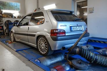 Az Autókorbelnél ahol az olvasók autóinak a teljesítmény mérése folyik, egy sportos Citroen Saxo állt a görgőkre. Mindannyian kedveljük a modellt, nagyon könnyű, príma futómű van alatta, de nem tudjuk, a tizenhat szelepes, sportos motor mit tud valójában.