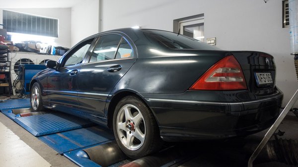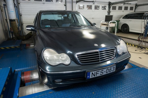 Olvasónk autója, egy W203-as C200k összesen 226 ezer kilométernél járt amikor a görgős padra állt. Motortere száraz volt és teljesen gyárinak tűnt. A mérés során semmi problémát nem tapasztaltunk, a négyhengeres szépen elforgott a 6400-as leszabályozásig és a görbe alakján látni lehet, hogy a maximális teljesítményét elektronikusan állították be. Teteje mintha le lenne vágva, szépen ellaposodik.