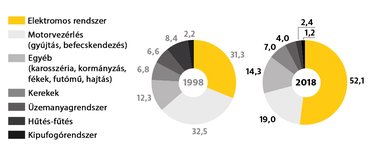 Az elmúlt húsz évben nem sok minden változott – gondolhatnánk az alábbi diagramokat látva. Ahogyan 1998-ban, úgy 2018-ban is az elektromos gondok voltak a leggyakoribbak. A friss statisztika szerint az összes lerobbanás 52,1 százalékát ezek adják. Ezen belül is az akkumulátorokkal akadt a legtöbb probléma, a teljes szám 42 százaléka ilyen jellegű riasztás volt.