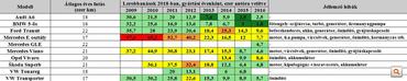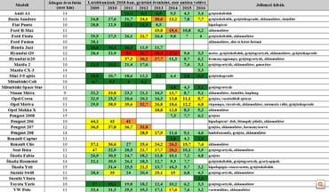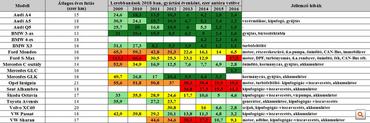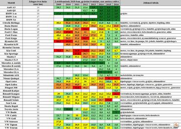 Ebből a közel négymilliós merítésből aztán az előző évekhez hasonlóan elkészítették a lerobbanási statisztikát, amely a miniautóktól a furgonokig kategóriánként mutatja, mely típusokkal volt a legkevesebb, illetve a legtöbb gond. Valamint azt is, milyen jellegű problémák merültek fel, mi romlott el a leggyakrabban.