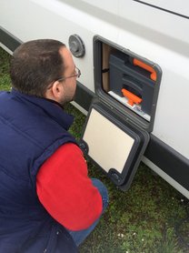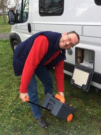 Még a kempingben ürítsük ki a szürkevíz és fekália tartályt, utóbbit tisztítsuk ki, és úgy tegyük vissza üresen. A használati vizet eresszük le. Ehhez kapcsoljuk le a vízszivattyút, és nyissuk meg a csapokat középállásba.