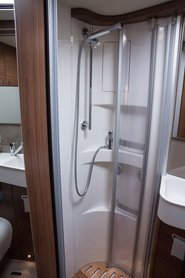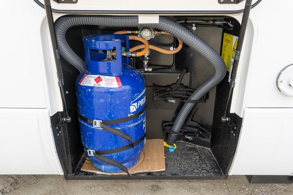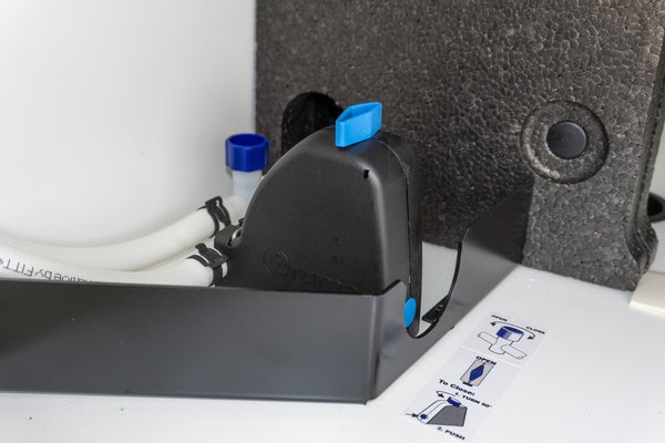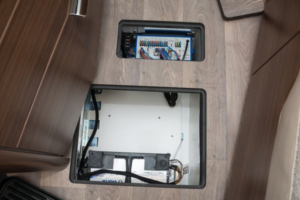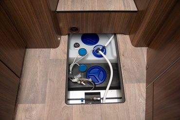 Konkrét példaként a Hymer BMC-T-ben három helyen kell kinyitni. Van egy a víztartályon, egy pedig a csövön. Bónusznak itt van még egy fagyvédelmi szelep (Truma Frost Control), ami 3 celsius fok alatt magától kinyit, és leengedi a vizet a kazánból (kézzel a forgókapcsoló elfogatásával lehet kinyitni). Ez közvetlenül a kazán után van, ezzel lehet leereszteni belőle a vizet. Lezárni viszont csak 7 celsius fok felett lehet, szóval ha feltöltenénk, és hűvös van, előbb fűtsünk be a kocsiba.