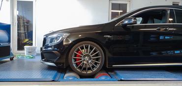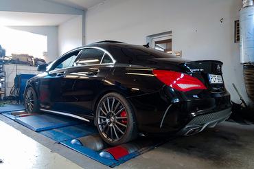 A CLA sok, eddig hagyományos, a Mercedesre jellemző dologgal szakított, az árát is próbálták a konkurensek magasságába pozicionálni, az eladásokat növelni, kicsit Mercedes-tömegmodellé tenni. Mivel azonban szinte mindegyik modellcsaládban megjelent az AMG-változat, a CLA-sorozat sem maradhatott ki ebből. Mérésünkre egy CLA 45 AMG modell érkezett, még az első, facelift előtti szériából.