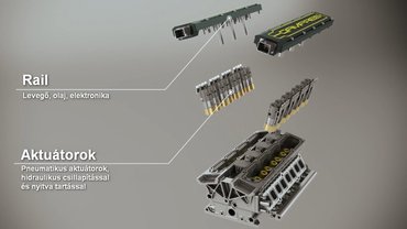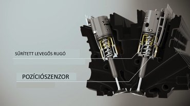A szelepek működtetése tulajdonképpen pofonegyszerű: egy sűrített levegős gázrugó nyitja és zárja a szelepet, bár ahogy a videókat elnéztem, azért akad ott egy gyengébb acél tekercsrugó is, hogy a zárást segítse, és gondolom azért is, hogy ne lógjanak szabadon akkor sem, ha áll a motor/nincs sűrített levegő. Minden szelepnek van egy helyzetérzékelője. A szelepeket hidraulika rögzíti nyitva, és hidraulikus csillapítású a mozgásuk.