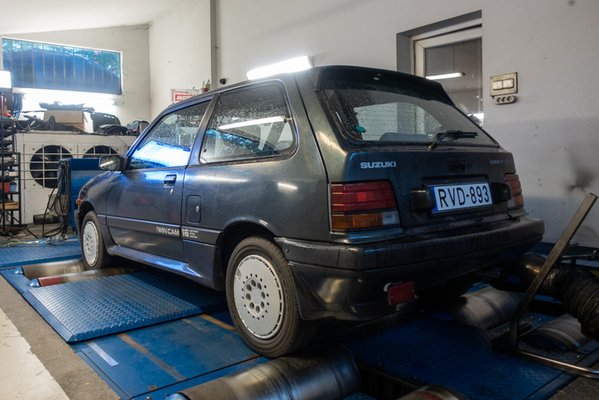 A mérésre érkező példány viszont kiköszörüli a csorbát, hiszen teljesen eredeti GTI, ráadásul érdekes előélete van. Mindössze 2,5 évig gyártotta a Suzuki az Mk1 Gti-t, kevés példány maradt mára. Ezt az autót egy Ebay-es liciten találta a mostani tulajdonos, még régi német rendszáma volt, talán a szíjak is eredetiek voltak a motoron, így azok azonnali cseréért kiáltottak. A g13b motorok tartóssága nem kérdés, a korabeli megmunkálási pontosság példás. Ez volt az első autó, aminél már a CAD (Computer Aided Design) kifejezést is használta a Suzuki.