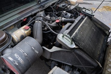 Később elhozzuk rendesen bemutatni is, most koncentráljunk a hajtásláncra. A 6,2 literes, Detroit Diesel V8 az első tengely mögött, lényegében a sofőr mellett lakik. Ezt gyakorlatilag ide fejlesztették. Örvénykamrás szívódízel hagyományos adagolóval – mi baj lehet? Semmi komoly, hiszen pont ez a hadiipari tervezés egyik célja: kevés gond, kevés karbantartás. Persze a 135 lóerő nem túl sok, ahogy a másik változat 150-je sem. A 339 Nm sem eget verő, de nem is a gyorsaság a fő erénye.