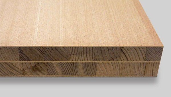 Régen nem volt kérdés hogy a fa az fa-e, az autógyártás hőskorában a műszerfalba valódi, tömör fa került, de jellemzően ezeket sem egyetlen darab deszkából faragták ki, az ugyanis már akkor sem tűnt jó ötletnek. Ugyan ez sem példa nélküli, de célravezetőbb volt táblásított anyagból dolgozni: olcsóbb, könnyebben megmunkálható fából, lécek ragasztásával elkészítették a szükséges panelt, és azt furnérral vonták be. Pontosan úgy, ahogyan régebbi bútoroknál is szokás volt: elkészítették olcsóbb fából táblákat, azokat síkra csiszolták, amire aztán nemesebb fából készült vékony lemezt - ez a furnér - ragasztottak. Mutatok is rá egy példát, ez például egy lécbetétes bútorlap metszete, a belül sima fenyőlécek vannak, arra húzták rá takarórétegnek egy olcsó műszaki furnér réteget, majd arra a drága, keményfából készült, milliméteres színfurnért: