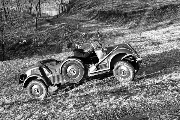 A harmincas éveknek kellett elérkeznie ahhoz, hogy megszülessen az igény kifejezetten katonai rendeltetésű, adott esetben összkerékhajtású, kis létszámú személyt szállító járművek kifejlesztésére, amelyek éppúgy alkalmasak tisztek szállítására és futárszolgálatra, mint felderítésre. Az egyik első fecskét a Mandzsúria 1931-es lerohanásával a II. világháborúhoz vezető hadi cselekményeket már ekkor megkezdő Japánban fejlesztették ki. Az alig 3,6 méter hosszú, a formájával a polgári autókat mintázó, ámde rövid tengelytávjával, nagy kerekeivel és összkerékhajtásával kiváló terepjáró képességű Kurogane Type 95 gyártását 1936-ban kezdték, és 4700 példány elkészülte után 1944-ben hagyták abba. A maga idejében a nyugati és a szovjet katonák által is csodált összkerekes törpét korábban Asszúr kolléga már bemutatta.