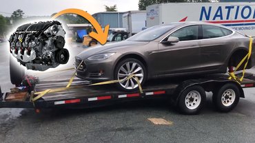 A vízkáros Model S P85D-be egy Chevrolet LS3 V8 került, méghozzá egy Camaróból. Bár a csúcs-Teslák teljesítménye idővel ráígért a Bugatti Veyronéra is, a P85D még nem volt végtelenül erős, csak simán nagyon erős. Villanyautóként eredetileg 463 lóerőt tudott, aminél a V8-assal így is kicsit gyengébb lett, hiszen az padon mérve 444 lóerős.