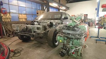 Az 5,9 literes, sorhatos, tizenkét szelepes turbódízel beépítese nem volt épp egyszerű feladat, de a műtét sikeres lett, és elkészült ez a szokatlan szerkezet. Vannak apró hiányosságok: például a hatalmas turbó és a hozzá tartozó csövek miatt nem fért fel a motorháztető. Valószínűleg ez nem is baj, hiszen így jobban látszik, hogy mennyire agyament dologról is van szó.
