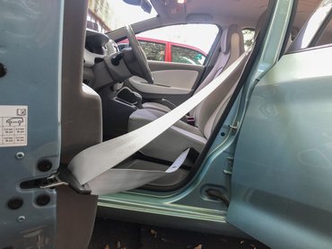 Ha sötét színű az öv anyaga, talán sosem veszed észre, mennyi minden ragadt a szövetbe, de egy világosabb övön már egész hamar észre lehet venni, hogy már nem úgy néz ki, mint amikor a gyárból kijött. Érdemes megnézni ennek a Renault Zoénak az öveit, pedig csak durván százezer kilométer van a kocsiban: elöl a sok használat miatt lett egészen sötétbarna, hátul meg az ovijárat közben kilöttyent gyümölcslé, rámaszatolt csoki meg fene tudja még mi színezte foltosra.