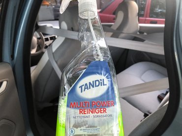 A megoldás az, ha levesszük a tisztítófejet – igaz, így már nem tudjuk szépen az övre permetezni a mosószeres vizet. De ez nem is nagy baj, mert én az egyik nagy kedvencemmel, az Aldiban kapható univerzális tisztítószerrel támadtam. Mikroszálas ronggyal bevizeztem az övet, aztán ráfújtam a szert, és hagytam kicsit hatni. Jól látszott, hogy már a mikroszálas kendő is elkezdte kiszippantani a koszt, de ide ez kevés volt.