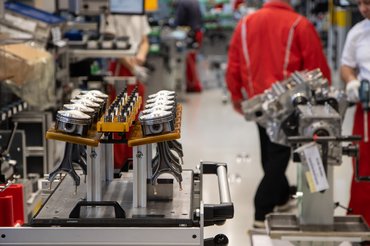 Ha a vízhűtéses mechanikai fázisnak vége, az összeszerelés ügyesen ütemezve, a folyamatokat pontosan követve és a munkatársakat kellően rotálva történik. Négy láncból áll a vezérlés, a vezérműtengely mindig tökéletesen csúszik a csapágyutcába, az olajszivattyú pedig nagy, hiszen hengerpáronként kezeli a szárazkarteres kenést. A hengerfej csavarjait gép húzza meg, mely sosem véti el a megadott nyomatékot.