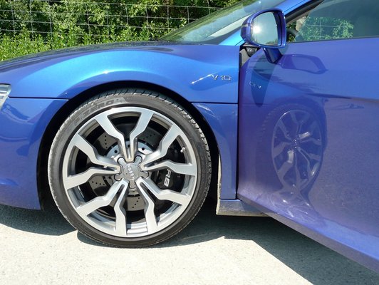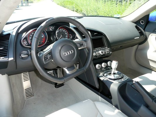 Talán még maguk az Audi mérnökei is bizonytalankodtak egy kicsit, amikor az egyik tesztpéldány porrá égett: szükség van egyáltalán a V10-re? Természetesen nincs. De hát az R8-ra sincs a világon semmi szükség, leszámítva természetesen, hogy kell. Az Audi RS4 V8-asa nagyon elöl van a kedvenc motorjaim listáján, de nem lehet az ember szemellenzős V8-rasszista, és akkor azt mondja: mégis, mi bajunk lehet szegély árva V10-essel?! Zavar valakit plusz 98 ló? Főleg, hogy így az R8-as testében ugyanazt a gyorsulást kapjuk, mint a Gallardóé: 3,9 a nulla-száz. Ugye, hogy kéne. A 315 km/h-s végsebességet nem is emlegetem, mert az már nem evilági tempó, csak a nettó, de annál megalapozottabb rettegés - ez nem dragster, hanem kompakt szupersportautó, ami a vezetési élményről szól.