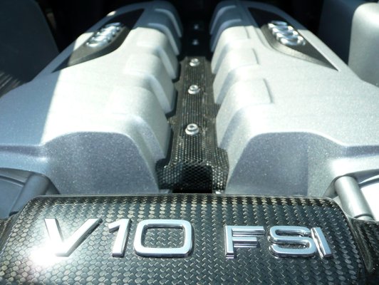 Nincs tehát semmi olyan extremitás, ami különlegessé tesz egy sportautót, a visszafogott elegancia szigorú elvárás lehetett. Egy ilyen üveglap alatt mutogatott V10-es motor mellett nem is nagyon kell extrémkedni – lehetne, de nem muszáj, az Audi meg ezt választotta. A motort nézegethetjük belülről is, és ha már nézegetjük, észreveszünk egy minimális rakodóhelyet, ahol talán elfér egy dzseki meg egy női táska.