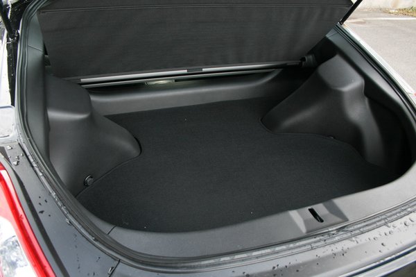 További praktikus szempont, hogy az utastérben nem fogunk a tériszonytól szédelegni, magasabb sofőrök számára főleg a fejtér lehet szűkös, az én pár szál hajam felett már csak tíz centi hely maradt. 235 literjével a csomagtartó sem óriási, de legalább már nem szeli át egy hatalmas merevítő híd, ami a 350Z csomagterét használhatatlanná teszi. Az utastérben pohártartó is akad, meg a könyöklő alatt öblös rekesz. Amerika a fő piac, azért.