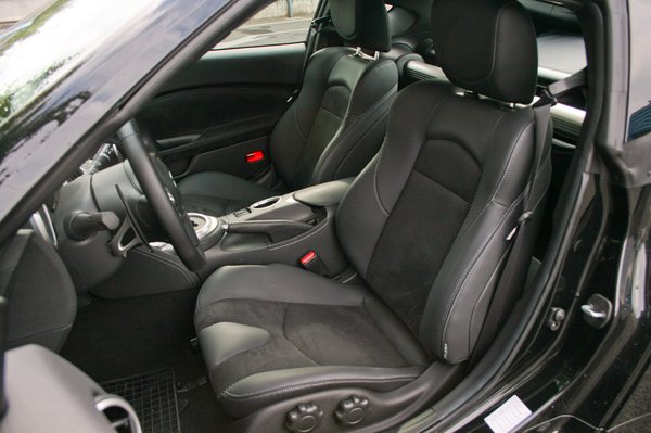 Különösen, hogy a kocsi többi alkatrésze is illik a teátrális előadáshoz. A rövidebb tengelytávnak, a szélesebb nyomtávnak, az alacsonyabb tömegközéppontnak és az átdolgozott, elöl kettős keresztlengőkaros, hátul több lengőkaros és nagyrészt alumíniumból készülő futóműnek hála a Z játékos, de stabil és piszok gyors. Hatásos a fék is, a 350Z Brembo rendszere helyett a Nissan saját, elöl négyduggatyús nyergei teljesítenek szolgálatot. Kimondottan jól: az elöl 355, hátul 350 milliméteres féktárcsák teljesítménye a sokadik lassítás után sem csökken.