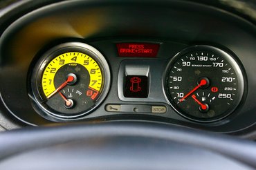 Mikor végre először lépünk oda rendesen, és a versenyautó-hang betölti körülöttünk a teret, végre egy kis elégtételt érezhetünk. Igazi érces üvöltés, mindenféle fojtás nélkül, egyre magasabb és élesebb. Aztán hétezer fölött csipogás és zöld ikon jelzi, hogy váltani kéne, kezdődik elölről az egész, amíg a hatodik végéhez nem érünk. 6,9 másodperc alatt van százon és 225 a vége. Vehemensen, elszántan gyorsít az RS, miközben képességeinek tán negyven százalékát mutatja.