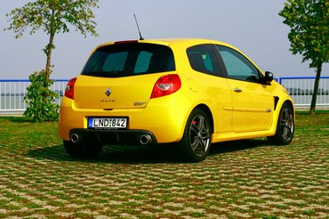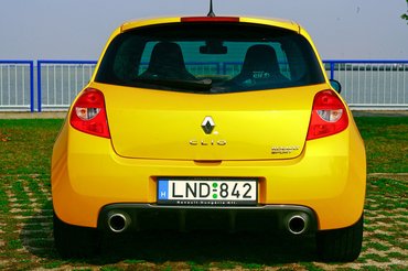 Mivel ótvar, unalmas formával a legjobb autó is csak eladhatatlan alkatrészkupac lenne, így – technika ide vagy oda – megfelelő módon kellett aljasítani a mezei Clio kinézetét. A feláras, Sirius sárga fényezés a legszembetűnőbb dolog. Fénytől függően a sárga minden árnyalatát visszaadó szín kellőképpen hivalkodó. A szürke felnikkel és betétekkel együtt hozza a darázs DNS-sel génkezelt nyílméregbéka üzenetet: szemre szép, de nem nyúka-piszka. A háromajtós karosszéria fittyet hány a praktikumra, öncélú, ezért lehet szeretni. A 17 colos felnik mögül pirosló, elöl négydugattyús, 312 milliméteres, barázdált tárcsákon gubbasztó Brembo nyergek pedig mutatják: nem telepi bemutatóautóval van dolgunk.