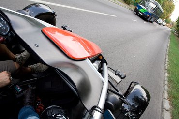 A motor már járt, adtam egy kis gázfröccsöt csak a feeling kedvéért, még mielőtt egyesbe tettem volna. Arra számítottam, hogy a motor azonnal felpörög és, mint egy speedmotornál, valahonnan négyezer környékéről indul majd el visszafelé a mutató a fordulatszámmérőn, ehelyett azonban nem történt semmi. A mutató meg sem mozdult. Azt hihetnénk, hogy egy ilyen kihegyezett gépnél minden rezdülést azonnali reakció követ, és ez egyébként igaz is, de nem alapjáraton, álló helyzetben. A gázpedál itt még nem igazán érzékeny, már ahhoz is rendesen rá kell lépnünk, hogy elinduljunk.