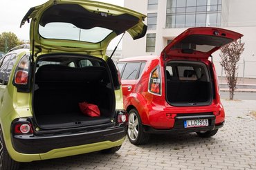 Külön már teszteltük a Soult és a C3 Picassót, de így, egymás mellett mégis feltűnőbb az egyetlen komoly különbség: a Soulban lényegében jelképes a csomagtartó, míg a Citroëné használható méretű. A hivatalos műszaki adatokban ez annyit tesz, hogy a Citroëné 385 literes, a Kiáé meg 340. Ez már szemre sem stimmelt, mert a Soulé alig hosszabb egy arasznál. Gyorsan bepötyögtem a kia.de címet, mert tudjuk: a csomagtartó méricskélés bajnokai a VDA-normákat használják, azaz a Német Autóipari Szövetségét. Szóval, ha van hely, ahol nem lehet a nevükkel szédelegni, az Németország.