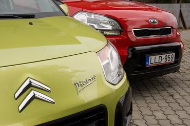 Abban a sajnálatos esetben, ha mégis döntéskényszerbe kerülnék, a Citroënt választanám, egyszerűen azért, mert ez jobban megfelel a feladatának, olyan primitív eszközökkel, mint a használható csomagtér és a létező rugózás. Listaáron ugyan drágább (5,3 millió Ft), mint a Soul (4,9 millió), viszont olyanokat tud, amit a Kia pénzért sem: fedélzeti számítógép, kétoldalas klíma, hátsó tálcák, gyerektorzító kistükör, satöbbi. A Kia mellett más érvek szólnak: a jobb első ülések, a hagyományos műszerfal, a hosszabb (7 éves) garancia, és az, hogy férfiasabb autó. Viszont a Soult mindezekkel együtt is inkább poénból vesz az ember, mert vagány és jópofa, de ez a poén a fent vázolt kényszerhelyzetekben egyszerűen nem jutna eszembe.