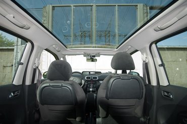 A karosszériák összehasonlítgatása még egy dologra fényt derít. Azért a Kia ülései elöl és hátul kényelmesebbek, főleg nagy emberek számára, egyszerűen azért, mert hosszabbak. A C3 azzal vág vissza, hogy a kormánya tengelyirányban is állítható, és lényegesen jobb belőle a kilátás. És nem csak felfelé, mert óriási tetőablaka van (ez extra), hanem a két vékonyka első tetőoszlop miatt is. A Kiában csak egy van, de az vastagabb. Tolatni is nehezebb a Kiával, mert nem látni semmit, de ezt ellensúlyozza 150 ezerért a tolatókamera, aminek a képét a belső tükörben látjuk, igaz, nem túl jó minőségben.