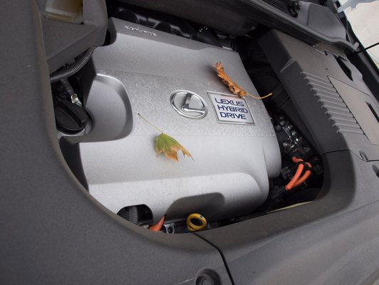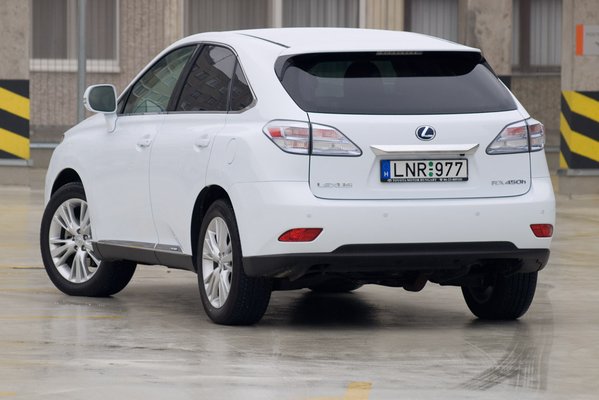 Az RX450h egy összkerékhajtásos SUV, vagy minek kell őt hívni, mindenesetre nem terepjáró, hanem inkább magas személyautó. Elöl egy olyan jellegű hibrid rendszere van, mint egy Toyota Priusnak, csakhogy ebben egy 3,5 literes V6-os motor (249 LE) égeti a benzint, továbbá van egy villanymotor (123 kW, azaz 167 LE) és egy villanymotor-generátor (116 kW, azaz 156 LE). És ha még ez nem lenne elég, akkor tessék megkapaszkodni: hátul van egy harmadik villanymotor, ez a hátsó kerekeket hajtja mindenféle kardán nélkül. Igaz, ez csak 50 kilowattos, azaz 68 lóerős.