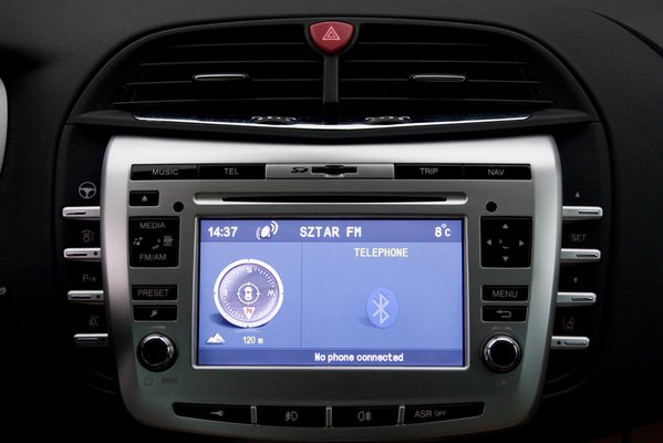 A vezetőt szórakoztató rendszerek listája a 9-10 milliós régióban nagyon gazdag. Többnyire felárért, mert a nyolcmilliós alapárba még a xenon sem fért bele. Azt már tudjuk a Puntóból, hogy a tangabugyi szimbólummal jelölt gomb a szervót hergeli az égbe, imádom is városban, és most itt van sávelhagyás-figyelmeztető. Ez nagyjából nyolcvantól működik, amikor indexelés nélkül átmenne a vonalon az ember, akkor a kormány ellenállása megnő – vagyis ez nem pittyeg, vagy vibrál. Kár, hogy amikor be van kapcsolva, az ikonja állandóan villog a műszerfal kijelzőjén. Este inkább kikapcsolja az ember, annyira zavaró, pedig tényleg hasznos lenne.