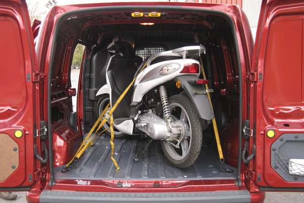 Viszont egy Keeway típusú robogót simán beraktunk és itt jött jól, hogy minkét oldalon volt tolóajtó, persze a bal oldali extraként. A magas változat volt nálunk, aminek a belmagassága 1364 mm, így majdnem nem kellett leszerelni a motor tükreit, de aztán jobb a békesség jegyében mégis. Ha viszont éppen nem robogót szállítunk, a méretek alapján (1830 mm x1226 mm) elvileg két szabvány raklap befér.