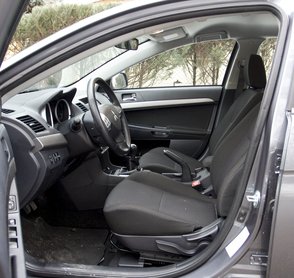 Ha eltekintünk attól, hogy végtelenül egyszerű, sőt, mondjuk ki, csúnya a Lancer utastere, meglepően jól fogjuk érezni magunkat. Míg szemünk csak a fekete műanyagokat látja, kényelmesen ülünk, kezünk minőségi anyagokat, precíz szerkezeteket tapint csak egyre. Minden annyira profi, hogy szépen lassan elfelejtjük, hogy ez a látvány valójában nekünk egyáltalán nem tetszik.
