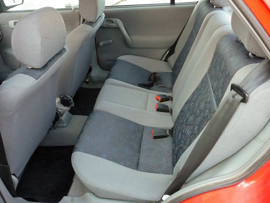 Az Autocitynél ráadásul borzasztóan ügyesek a kozmetikusok. A lassan retrósorba lépő Felicia belterét meghökkentően közel hozták a szalonállapothoz. Sok a műanyag, kicsit otrombán kattannak a kapcsolók, az elektromos tükörállító meg úgy néz ki, mint egy korai üzbég kvarcjáték kezelőfelülete. De az összhatást tekintve ha nem is maradéktalanul szépek, de harmonikusak a formák. Érdekes, hogy ez a bolgár kamionos kuplerájokba illő színvilágú üléskárpit a mai napig fel-felbukkan új autókban. A piros váltószoknya nyilvánvalóan valamelyik tulajdonos túlkapása, úgyhogy ezt nem értékeljük, a fűtésszabályozó, a műszerek, bajuszkapcsolók viszont már a Volkswagen-konszerntől érkeztek.