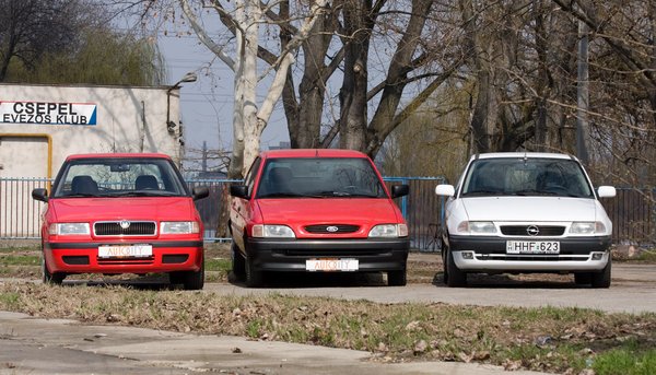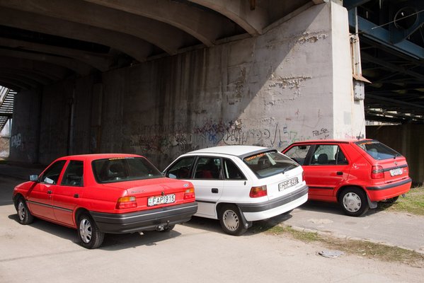 Ha egymás mellé állítjuk őket, na, melyiknek kopott a legkevesebbet a formája? Hát persze, hogy a Feliciáé. Az Escort sose nézett ki jól, legalábbis ez a változat. A kocka, az igen, aztán valahogy sose jött már össze úgy, mint rég. Az Astrából pedig továbbra is olyan irgalmatlanul sok van, hogy nehéz értékelni a formáját. Nem csak úgy értékelni, hogy írunk róla egy több oldalas értékelést, hanem hogy értékeljük: nahát, ez aztán forma a javából!