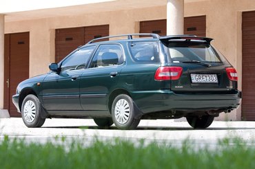 Szép tiszta forma, nem nagyon karakteres, inkább finom vonalakkal. Tudom, nehéz ezekben meglátni a szépséget, de nekem nagyon megy, igaz, nekem még a Csikós Ezeréves Sólyom névre hallgató ős Mazda 626-osa is tetszett. A Baleno inkább a Toyota Carina E-stílus, persze az nagyobb, drágább és a belseje is elegánsabb. Ez csak használati tárgy, családi minimálkombi, aki azért kétszólamú dudával adja a világ tudtára, hogy ő igenis nagy autó, nem egy szaros Swift. A hátsó oldalajtók persze megegyeznek a szedánéival, de akkor is: Indiában komoly limuzin, az ziher. Viszont vannak szép, modern tetősínei, szárnya meg a puttony oldalablakára szerelt mobiltelefon-antenna, nyilván még a Nokia hőskorából.