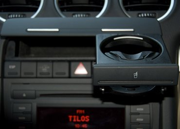 A három beömlő alatt egy jó széles, csillapítva nyíló fedelű, plüssel bélelt rekesz, amiben épp egy telefon és egy hitelkártyánál nem sokkal termetesebb brifkó fér el. Aztán a pohártartó, ami országúton alkalmas pohártartásra, de városban minduntalan kiszédeleg belőle a palack. Errefelé van az ESP kikapcsológombja és néhány vak gomb, aztán a hifi, ami elég jól szól, és az Audi előző klímavezérlője.