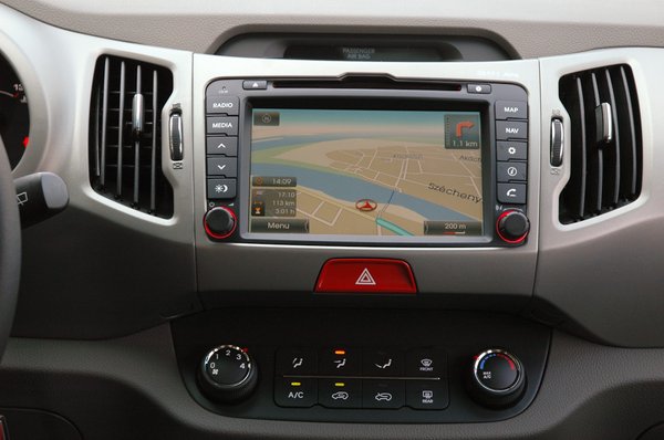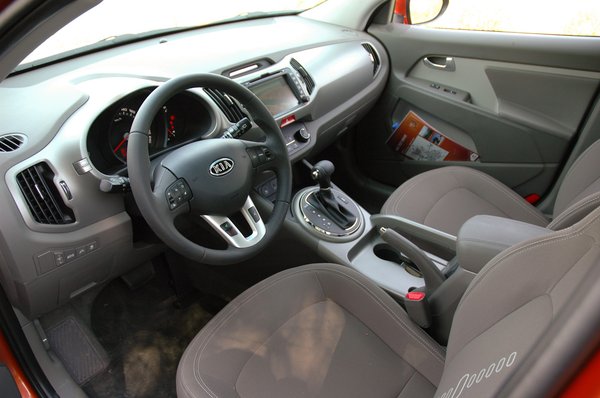 A próbaútra bőrkárpitozású, dízelmotoros, összkerékhajtású, automata váltós példányt kaptunk. A szürke belső térbe huppanva az tűnt fel először, hogy mennyire könnyű hozzászokni a géphez. Teljesen hiányzott az a néhány kilométeres összeszokási szakasz, ami a legtöbb tesztautó birtokbavételét jellemzi, pedig jómagam még csak hasonlóban sem ültem hónapok óta. Nem tudnék magyarázatot adni a jelenségre – talán a kezelőszervek egyértelmű működése és a jól formázott, kellőképpen kemény ülések tehetnek róla, vagy az egyértelműen működő, jó fogású kezelőszervek. A Sportage belül nélkülözi az egyéni részleteket – úgy képzelem, azért, mert a koreai mérnökök és a Németországban dolgozó formatervezők eleve nem azzal a görccsel láttak munkához, hogy mindenáron túl kell valahogy licitálni a konkurenciát különc ötletekben. Egyszerűen az volt a feladat, hogy készítsenek egy terméket, amely minden szempontból egyenrangú a vetélytársaival.