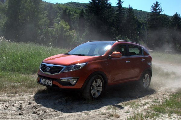 Azt a gyáriak sem állítják, hogy a Sportage terepjárónak is jó volna. Van ugyan zárható összkerékhajtása, de ahhoz nem elég a hasmagassága, hogy egy-egy földutas kitérőnél többel érdemes legyen megpróbálkozni. A futóműve is inkább épített utakra való kompromisszumot képvisel: épp annyira feszes, hogy tempós kanyarokban is mindvégig stabil és kontrollálható maradjon az autó, de elég puha, hogy rossz úton se törje össze az utasokat: Szentendre macskaköves kis utcáin repülő szőnyegként suhant keresztül, és földúton sem vált elviselhetetlenné. Érdekes, hogy a testvérmodell, az ix35 valamivel keményebb hangolást kapott, annak ellenére, hogy egyértelműen a Kia a sportosabb jelenség.