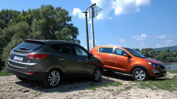 Olyan szerencsénk volt, hogy rögtön a nemzetközi sajtóbemutatón volt alkalmunk megejteni az összehasonlítást a testvérmodellel. A Kia ugyanis Magyarországon tartotta a típus premierjét, így kértünk a Hyundaitól egy ix35-öst, és egymás mellé állítottuk a két autót. Ha az volt a cél, hogy más vevőket célozzon a két autó, sikerült. Akiket megkérdeztünk, nagyjából fele-fele arányban választották volna az egyiket vagy a másikat, de mindenki azonnal rávágta a választ. A Hyundai talán érdekesebb jelenség, viszont a Sportage dinamikusabb, erőteljesebb, agresszívabb karakter. A választás így inkább ízlés dolga, műszaki szempontból ugyanis csak apró, hangolásbeli különbségek vannak, a helykínálat gyakorlatilag azonos, és a két autó ára között sincsen néhány tízezer forintnál nagyobb különbség, ha az azonos motorral és hajtáslánccal felszerelt kiviteleket nézzük.