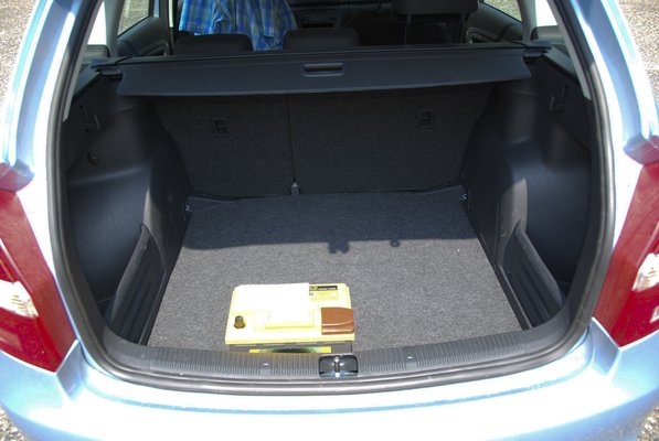 A csomagtartónak van egy váratlan, kellemes mélysége, és a kellemes mélység alatt még egy teljes értékű pótkereket is talál, aki nem cserélte ilyen 16 colos felnikre és /45-ös, elég sportos profilú gumikra. 505 liter, épp 200-zal nagyobb, mint a ferdehátú Fabiáé, viszont a hátsó üléstámlák nagyon nem dönthetők síkba. De annyira nem, hogy mintha direkt kiemelték volna, mennyire nem lehet ezzel hosszabb tárgyakat fuvarozni, bezzeg a hamarosan érkező Polo Kombi, azzal csodálatos lesz. A fabiások vigasza a két oldalsó rekesz és két behajtható táskaakasztó a csomagtér oldalában – 15 ezer forintos felárért.